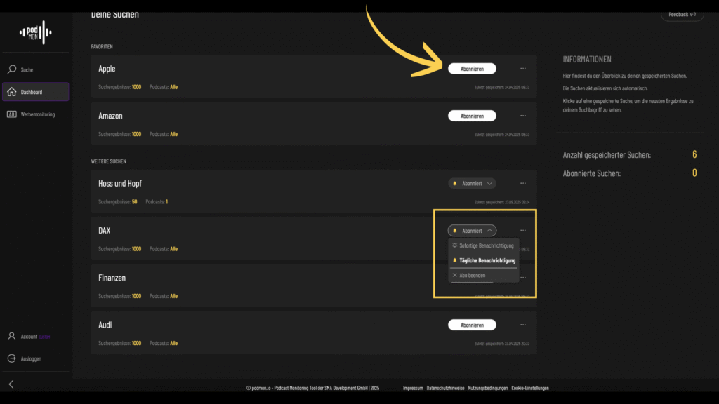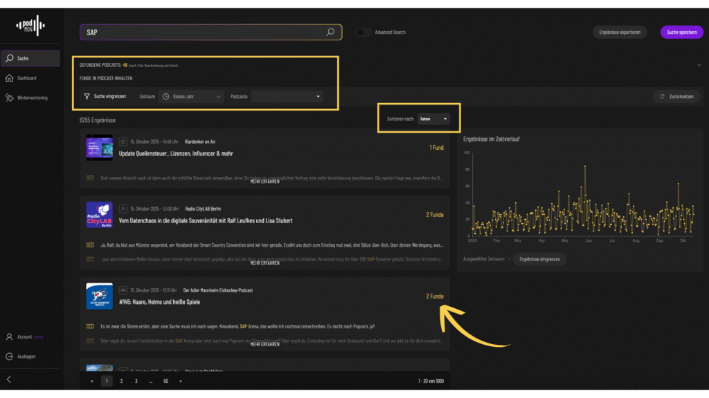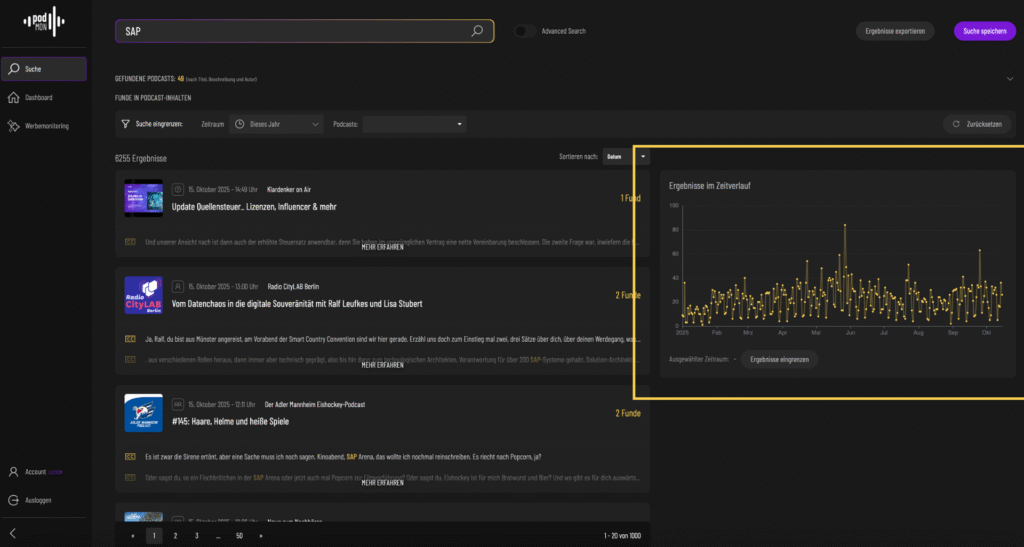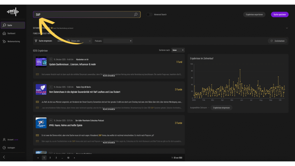 - Brand Monitoring: Finde heraus, wo deine Marke in Podcasts erwähnt wird.